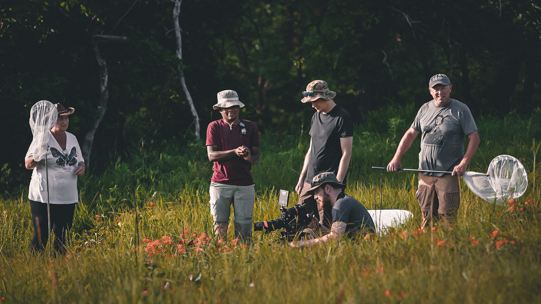 As the sun set on the third day, we were filming a herd of bison on the roadside when I noticed a monarch perched on some milkweed in front and slightly to the left, of a bison staring straight down the barrel. This prompted me to think of a shot that had been deemed in the storyboards as "nice to have, but extremely unlikely"… a bison to monarch pull focus. I proceeded to pan, simultaneously pull focus, and repeat; I managed to repeat the shot a couple of times, and it was looking... ok, but less than ideal. Call it experience, intuition, the force, or sheer dumb luck; something told me to pull focus but not to pan. This is the moment that you see on screen! As I pulled focus from the bison, the monarch entered frame left, came perfectly into focus, and exited frame right. It was (in my biased opinion) a perfect moment, and it was the first time that I can recall thinking, “That’s definitely going to make the cut”. This was the last shot that was captured during this portion of the shoot; the sun had just dipped behind a hill when we wrapped. We were shooting on a Canon CN20x50, which is a very light-thirsty lens! Luckily, we were shooting on a RED GEMINI, which allowed us to put the camera in low light mode and continue to capture footage beyond what would usually be possible. Had we not elected to take the GEMINI, we may not have captured this unique and very special moment in time. It just goes to show that time spent in pre-production, planning shots, discussing the kit, and setting expectations before filming is of vital importance for the success of a shoot.