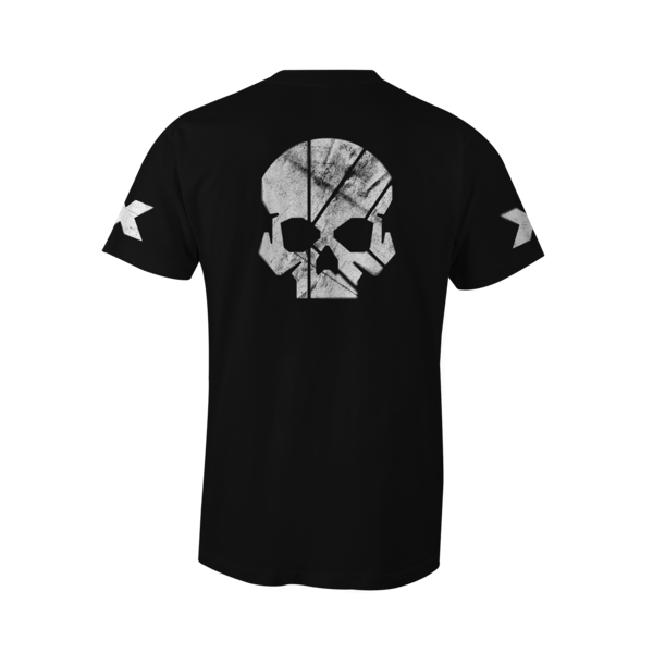 RED® is boldly printed and distressed on the front of shirt with KOMODO® skull positioned on the back. Distressed X's are printed on the shoulder sleeves.